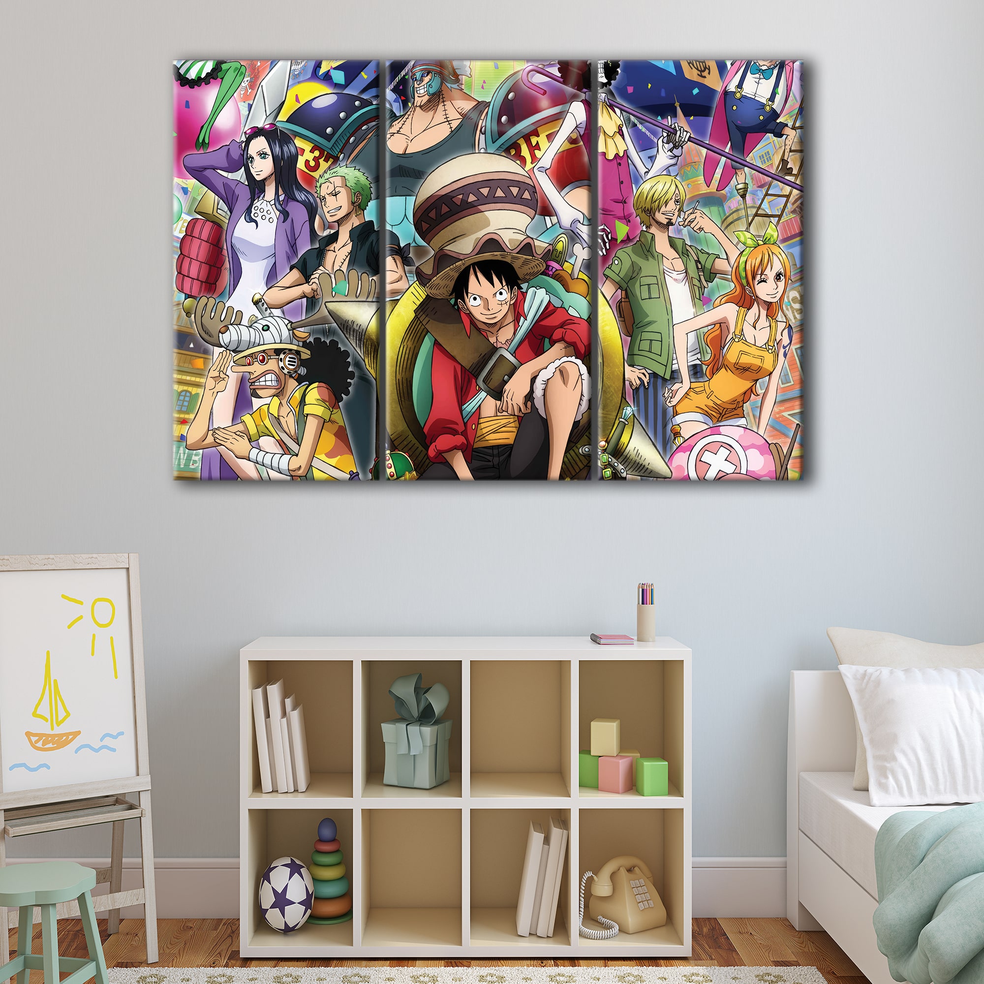 Cet art mural One Piece est disponible en 1 panneau, 3 panneaux (triptyque), 5 panneaux ou en toile avec cadre flottant. En plus, il est disponible dans de nombreuses dimensions: de l’impression sur toile en petite dimension jusqu’à la dimension extra large (180 cm de largeur). Ce tableaux aura certainement sa place dans votre garage, votre couloir, votre chambre d’enfant ou même votre bureau.Tableau triptyque Anime et Manga – Idées cadeaux