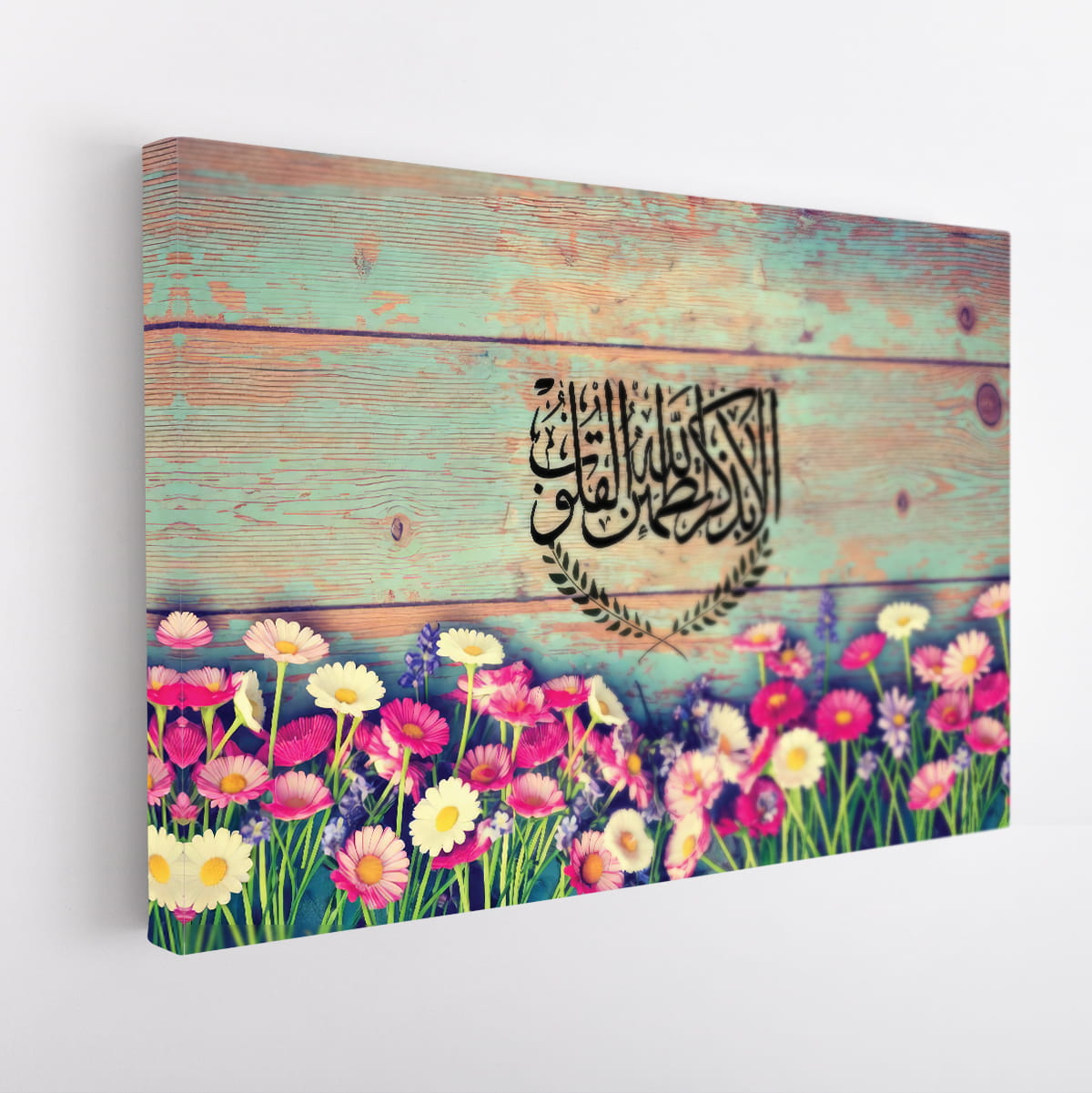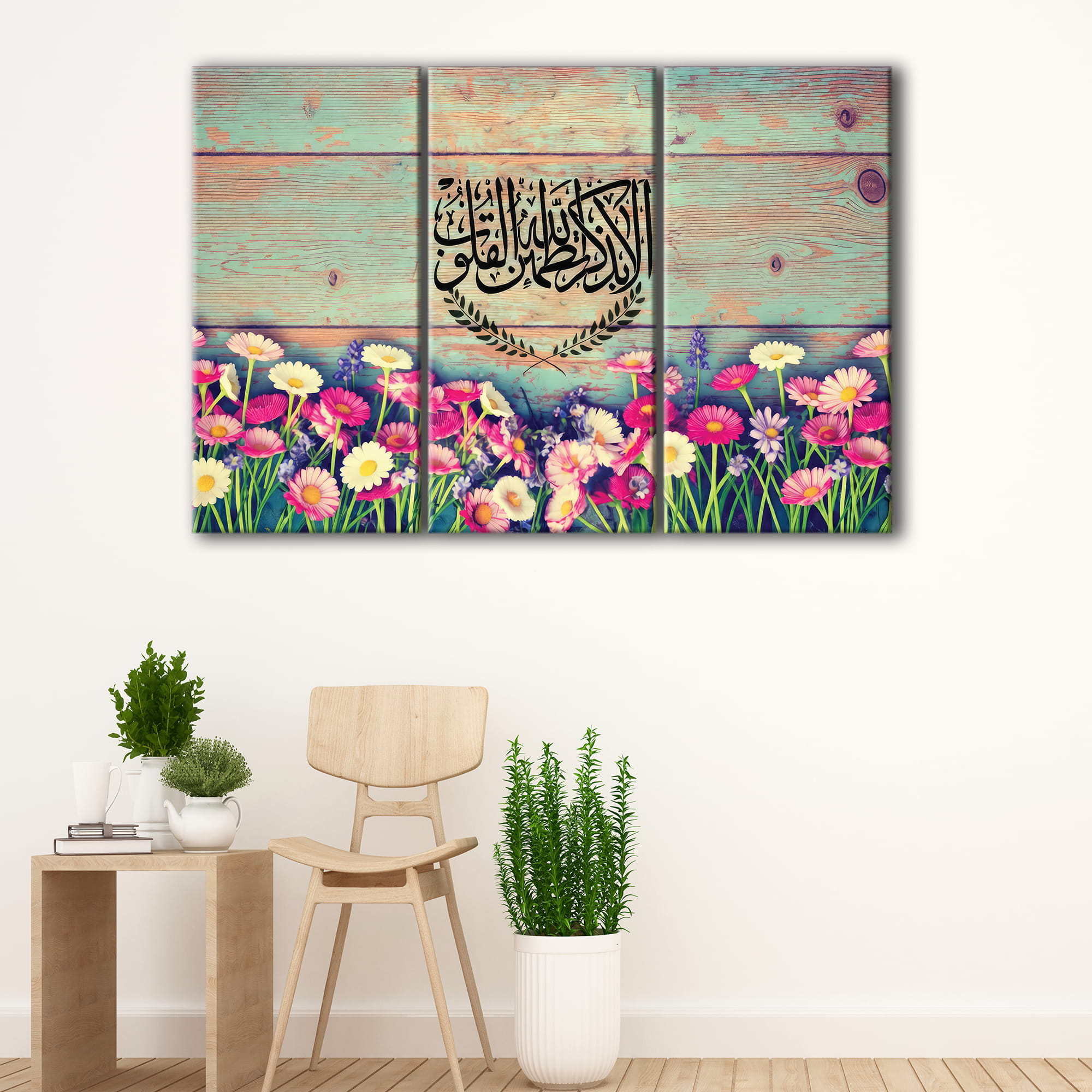 This Al bethkri Allah Tatmain Al Quloob artwork makes a perfect birthday gift or anniversary gift. You can also gift it to calligraphy art lovers. Spread love in your surroundings by offering this stunning arabic calligraphy canvas wall art!