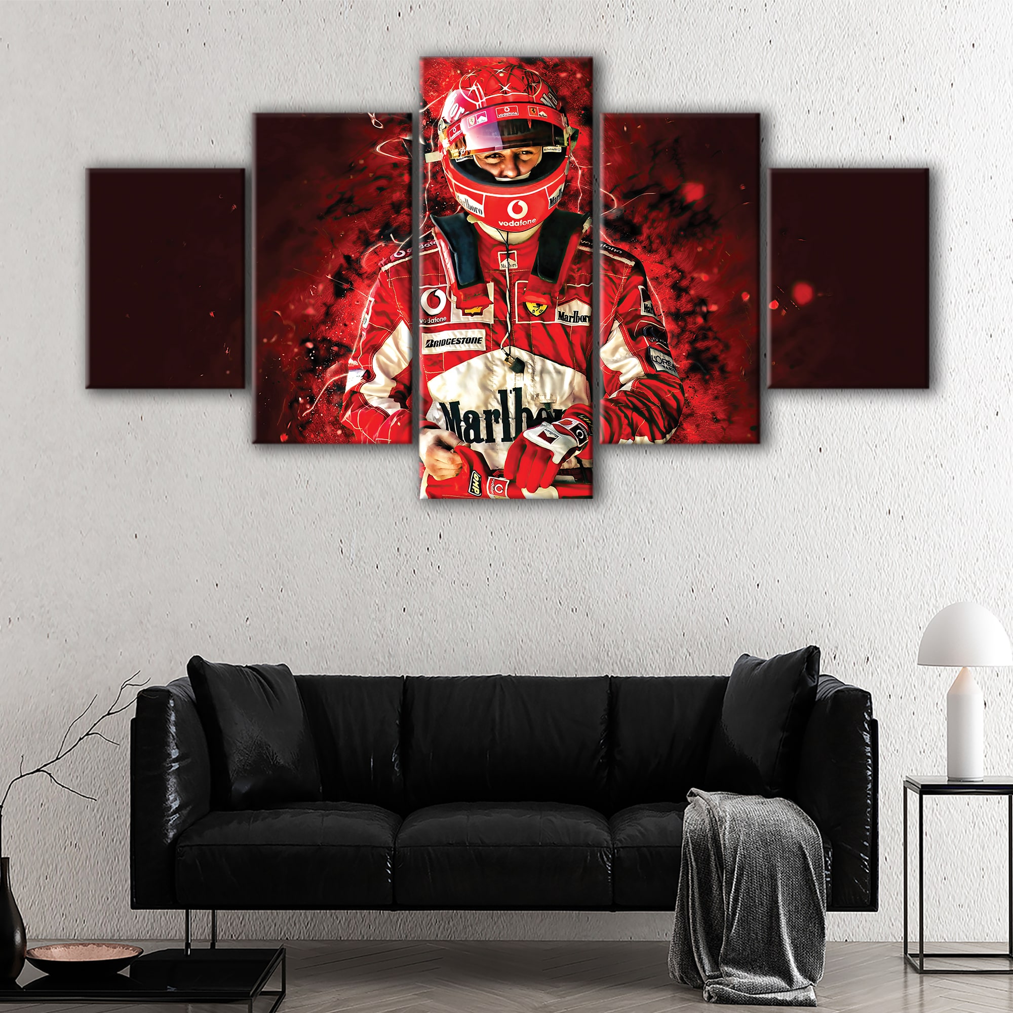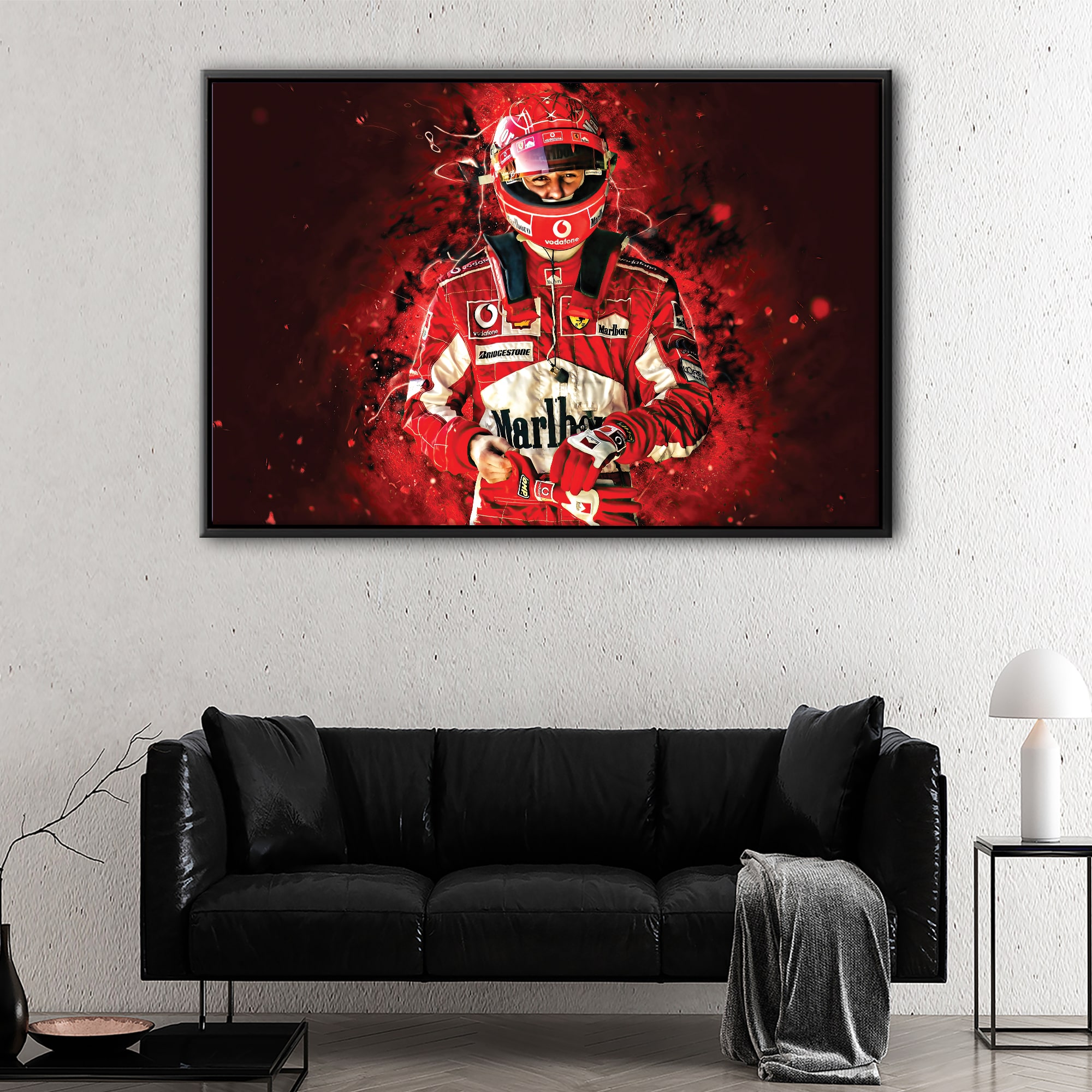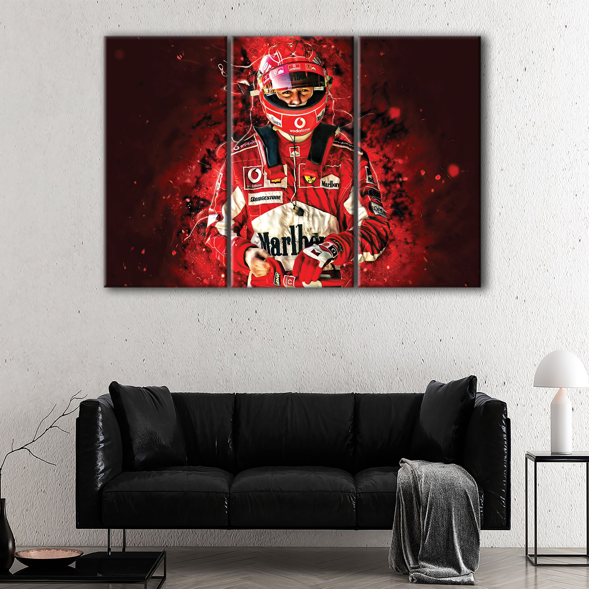 The Michael Schumacher wall art is available in 1 panel, 3 panels, 5 panels or floating frame canvas. Plus, It’s available in many different sizes: from small to over-sized canvas print. So it will certainly fit in your garage, hallway, kids room or even your office space.Formula 1 Gifts