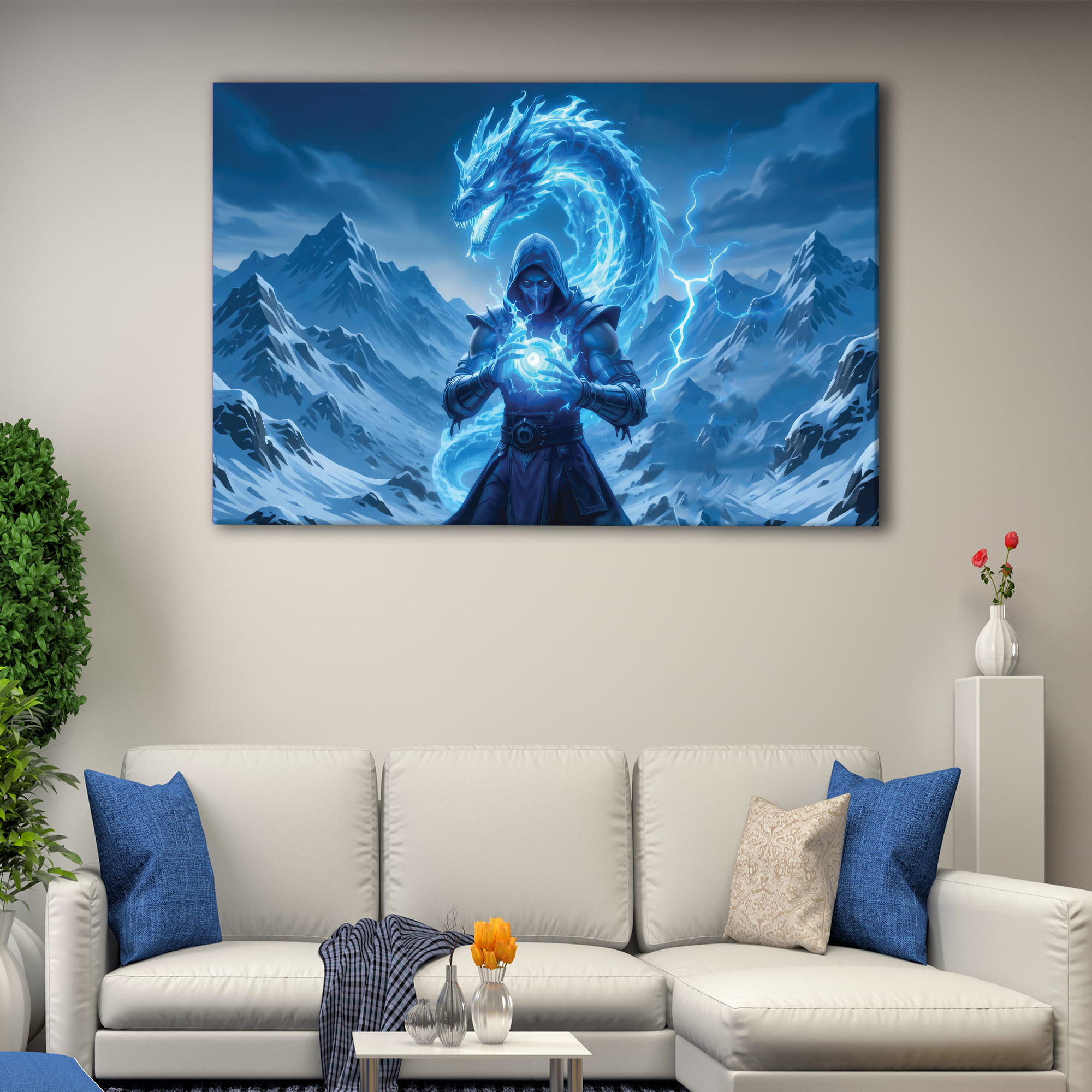 This martial arts movies artwork makes a perfect birthday gift or anniversary gift. You can also gift it to action movie lovers . Spread love in your surroundings by offering this stunning Sub-Zero Dragon canvas wall art!