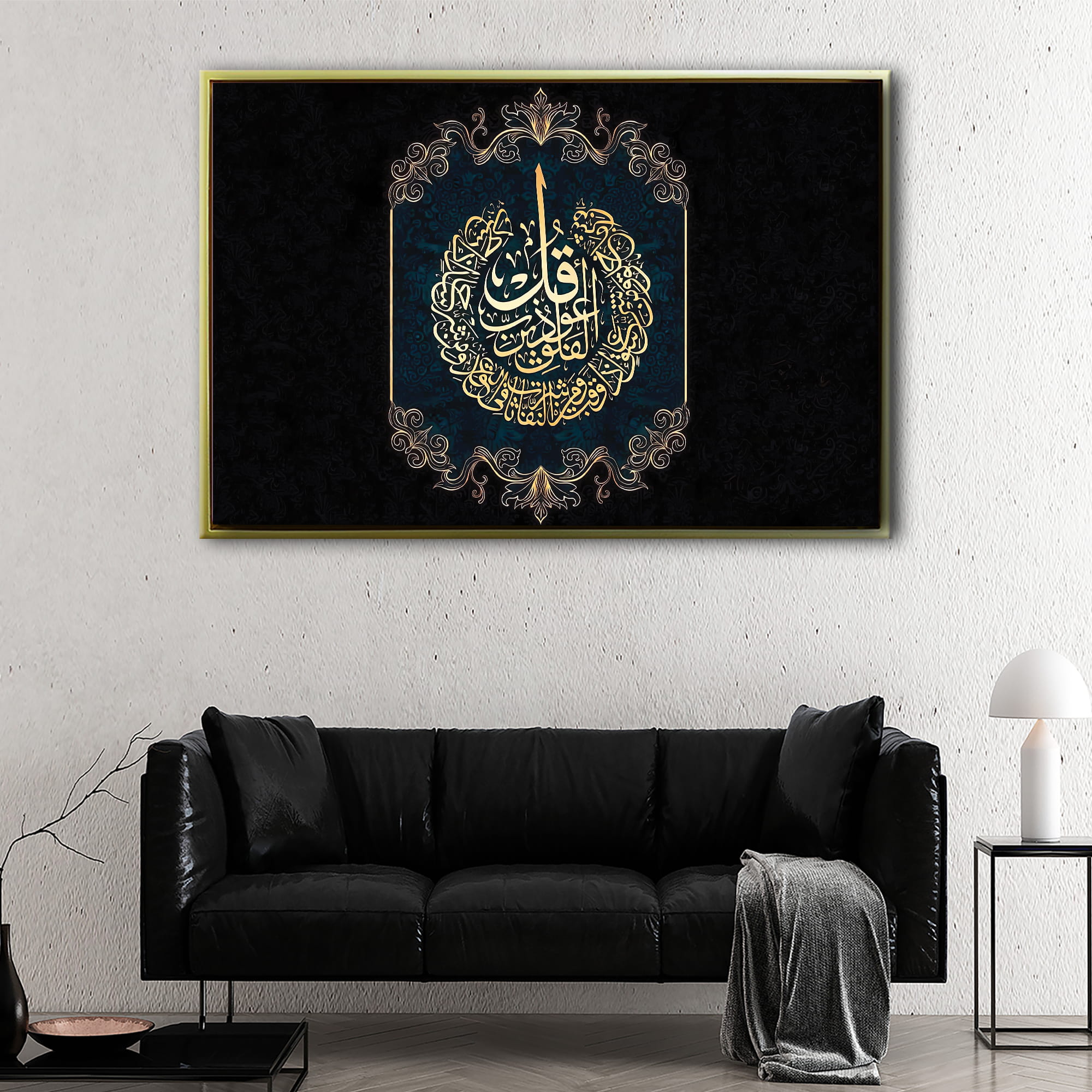 This Surah Al-Falaq Calligraphy artwork makes a perfect birthday gift or anniversary gift. You can also gift it to calligraphy art lovers. Spread love in your surroundings by offering this stunning arabic calligraphy canvas wall art!